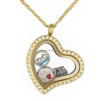 Medalhão, aço inoxidável 316l strass forma de coração flutuante fabricante, medalhão de vidro de prata